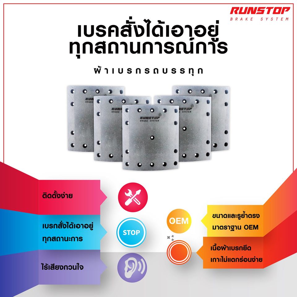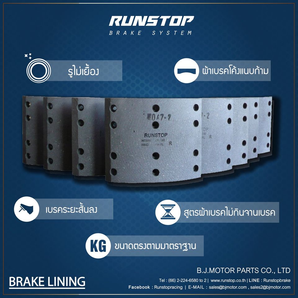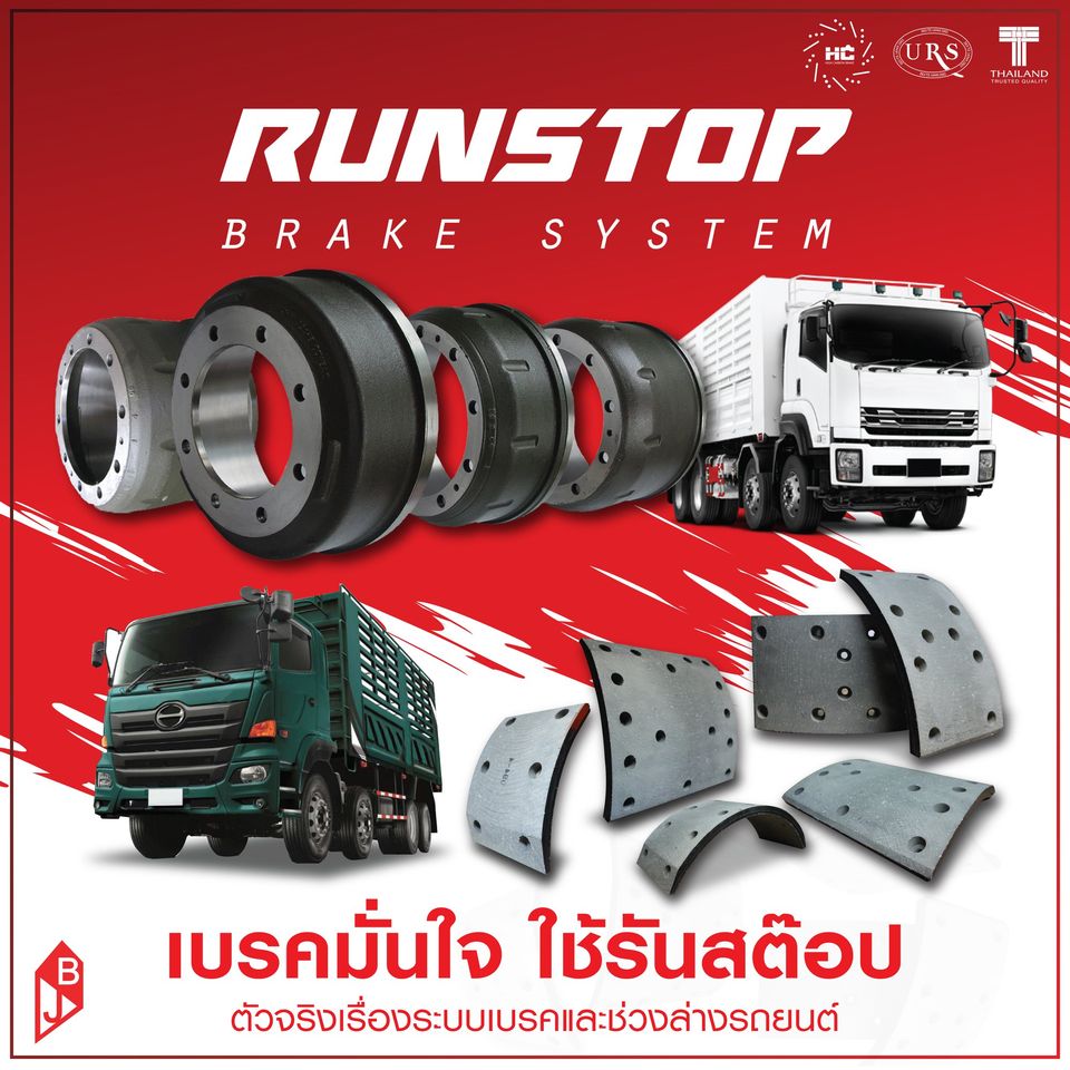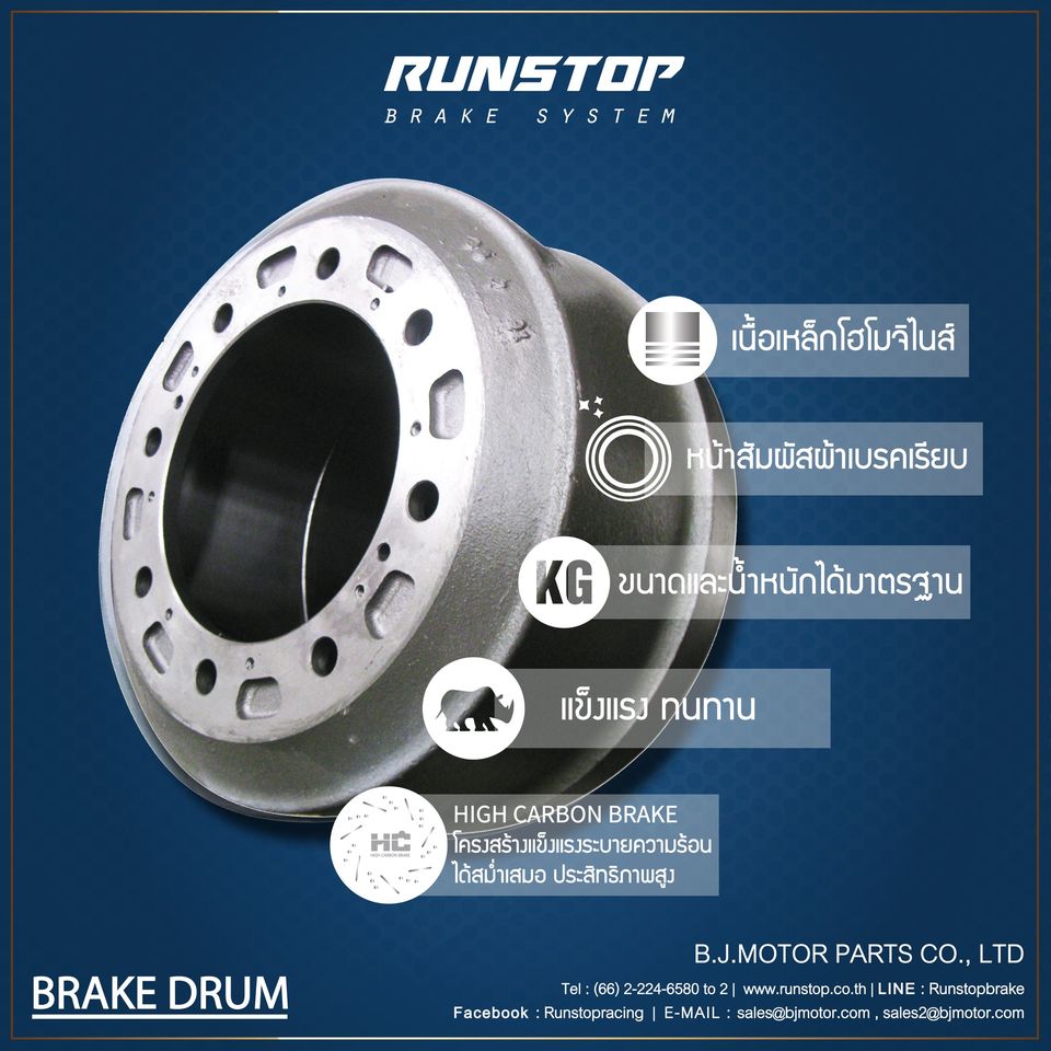 ดรัมเบรค …. ระบบเบรคที่จะมักพบในรถบรรทุกหนักหรือล้อหลังของรถกระบะ นั้นเป็นเพราะ ด้วยลักษณะการทำงานที่เมื่อเบรค ปั้มเบรคจะดันผ้าเบรคไปจับกับฝาครอบเบรคเพื่อชะลอและหยุดล้อ ซึ่งข้อดีของดรัมเบรคคือ เหยียบเบรคไม่ต้องแรงมากก็หยุดได้อยู่ เหมาะกับรถที่มีน้ำหนักเยอะ ผ้าเบรคกว้างและยาวโดยรอบของฝาครอบเบรค เป็นระบบปิดไม่ต้องดูแลรักษาบ่อย แต่ก็มีข้อเสียอยู่บ้างคือ เวลาถอดมาดูแลจะหลายขั้นตอนหน่อย ไม่ระบายฝุ่น หรือน้ำสักเท่าไหร่ แต่ความสามารถของดรัมเบรคยังคงเหมาะสมกับรถที่มีการบรรทุกหนัก Runstop มีผ้าเบรคสำหรับรถบรรทุกหนักซึ่งใช้งานอยู่ในชีวิตประจำวันของพวกเรานี้แหละ